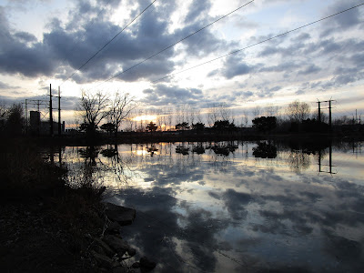 Maybe it was because today was the final day of classes this week, maybe it was just the upbeat mood I was in, but I felt like the old mountain bike was flying this afternoon. I didn’t have the good camera with me, but images from the point-and-shoot still turned out pretty—the cold day yesterday meant that, in 50-degree weather, the lake was covered in thin ice. After the rain, the clouds had started to thin out, and at sundown, the lake was incredibly gorgeous.